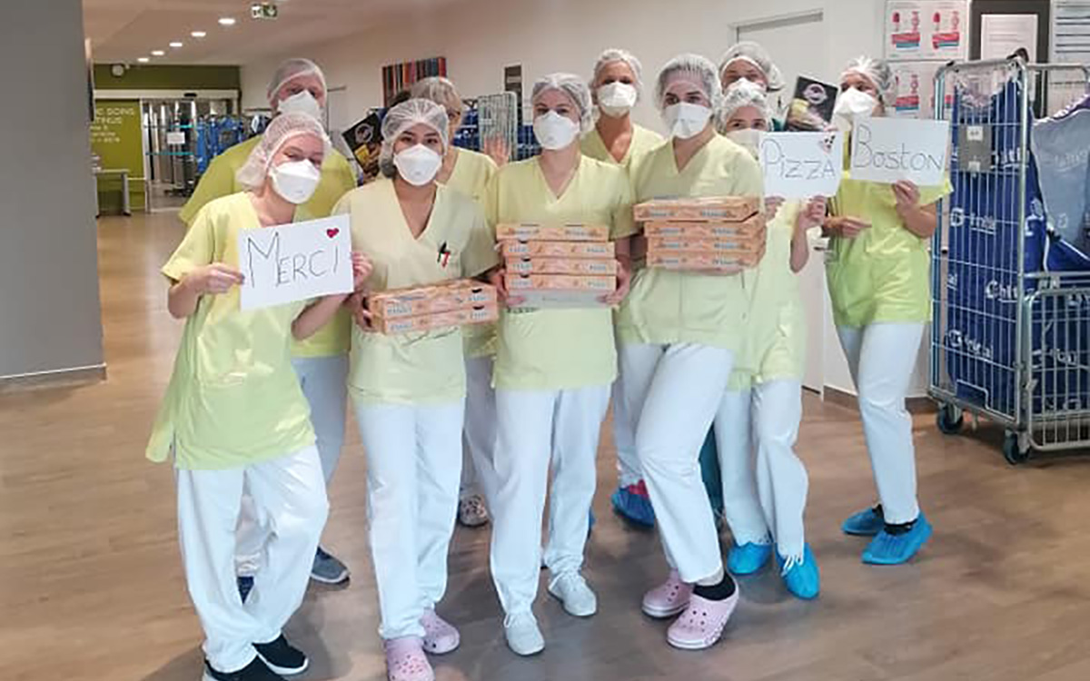 Boston pizza solidaire des soignants leur offre un bon repas. Plein de courage et de force à votre équipe!