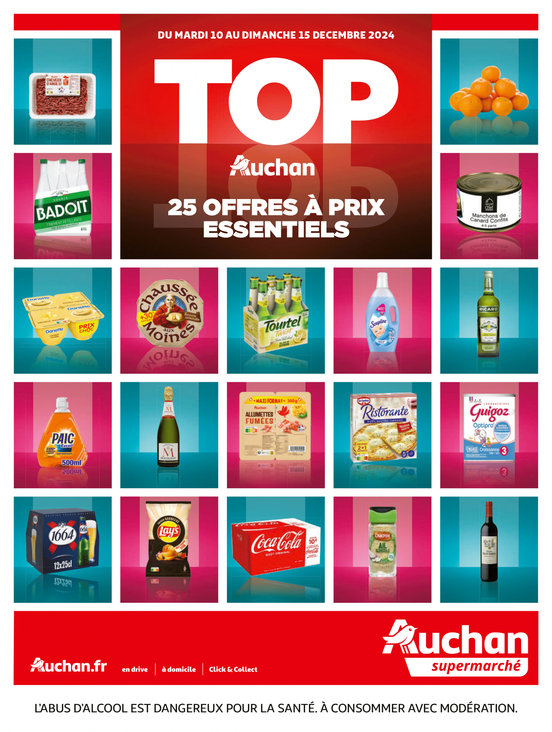 Du 10 au 15 décembre 2024, 25 offres à prix essentiel ! lundi 09 décembre 2024|Actualités, Auchan supermarché| Du 10 au 15 décembre 2024, 25 offres à prix essentiel à Auchan Esplanade ! Catalogue Auchan du 10 au 15 décembre 2024 1 fichier·s 11.50 MB Télécharger Partagez cette page sur les réseaux sociaux FacebookXRedditLinkedInWhatsAppTumblrPinterestEmail Articles similaires Du 16 au 24 décembre 2025 Du 16 au 24 décembre 2025 lundi 22 décembre 2025 Du 16 au 31 décembre 2025 Du 16 au 31 décembre 2025 lundi 22 décembre 2025 Du 26 décembre 2025 au 6 janvier 2026 Du 26 décembre 2025 au 6 janvier 2026 lundi 22 décembre 2025 Du 9 au 13 décembre 2025 Du 9 au 13 décembre 2025 lundi 22 décembre 2025 Du 2 au 6 décembre 2025 Du 2 au 6 décembre 2025 mercredi 03 décembre 2025