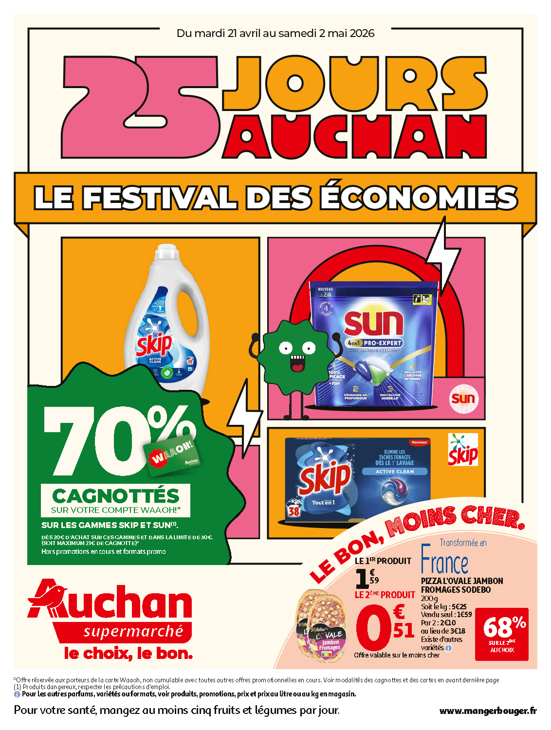 Du 21 avril au 2 mai 2026 mardi 21 avril 2026|Actualités, Diaporama-accueil, Auchan supermarché| Du 21 avril au 2 mai, un festival d’économies pendant les 25 jours Auchan ! Télécharger le catalogue Partagez cette page sur les réseaux sociaux FacebookXRedditLinkedInWhatsAppTumblrPinterestEmail Articles similaires Du 8 au 18 avril 2026 Du 8 au 18 avril 2026 vendredi 17 avril 2026 Du 14 au 18 avril 2026 Du 14 au 18 avril 2026 vendredi 17 avril 2026 Du 14 au 25 avril 2026 Du 14 au 25 avril 2026 vendredi 17 avril 2026 Du 24 février au 7 mars 2026 Du 24 février au 7 mars 2026 lundi 02 mars 2026 Du 16 au 24 décembre 2025 Du 16 au 24 décembre 2025 lundi 22 décembre 2025