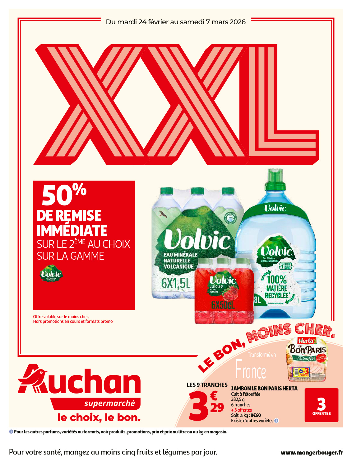 Du 24 février au 7 mars 2026 lundi 02 mars 2026|Actualités, Diaporama-accueil, Auchan supermarché| Du 24 février au 7 mars 2026, des réductions XXL ! 50% et plus de remise immédiate sur certains produits, 2+1 offert sur d’autres… Télécharger le catalogue Partagez cette page sur les réseaux sociaux FacebookXRedditLinkedInWhatsAppTumblrPinterestEmail Articles similaires Du 16 au 24 décembre 2025 Du 16 au 24 décembre 2025 lundi 22 décembre 2025 Du 16 au 31 décembre 2025 Du 16 au 31 décembre 2025 lundi 22 décembre 2025 Du 26 décembre 2025 au 6 janvier 2026 Du 26 décembre 2025 au 6 janvier 2026 lundi 22 décembre 2025 Du 9 au 13 décembre 2025 Du 9 au 13 décembre 2025 lundi 22 décembre 2025 Du 2 au 6 décembre 2025 Du 2 au 6 décembre 2025 mercredi 03 décembre 2025