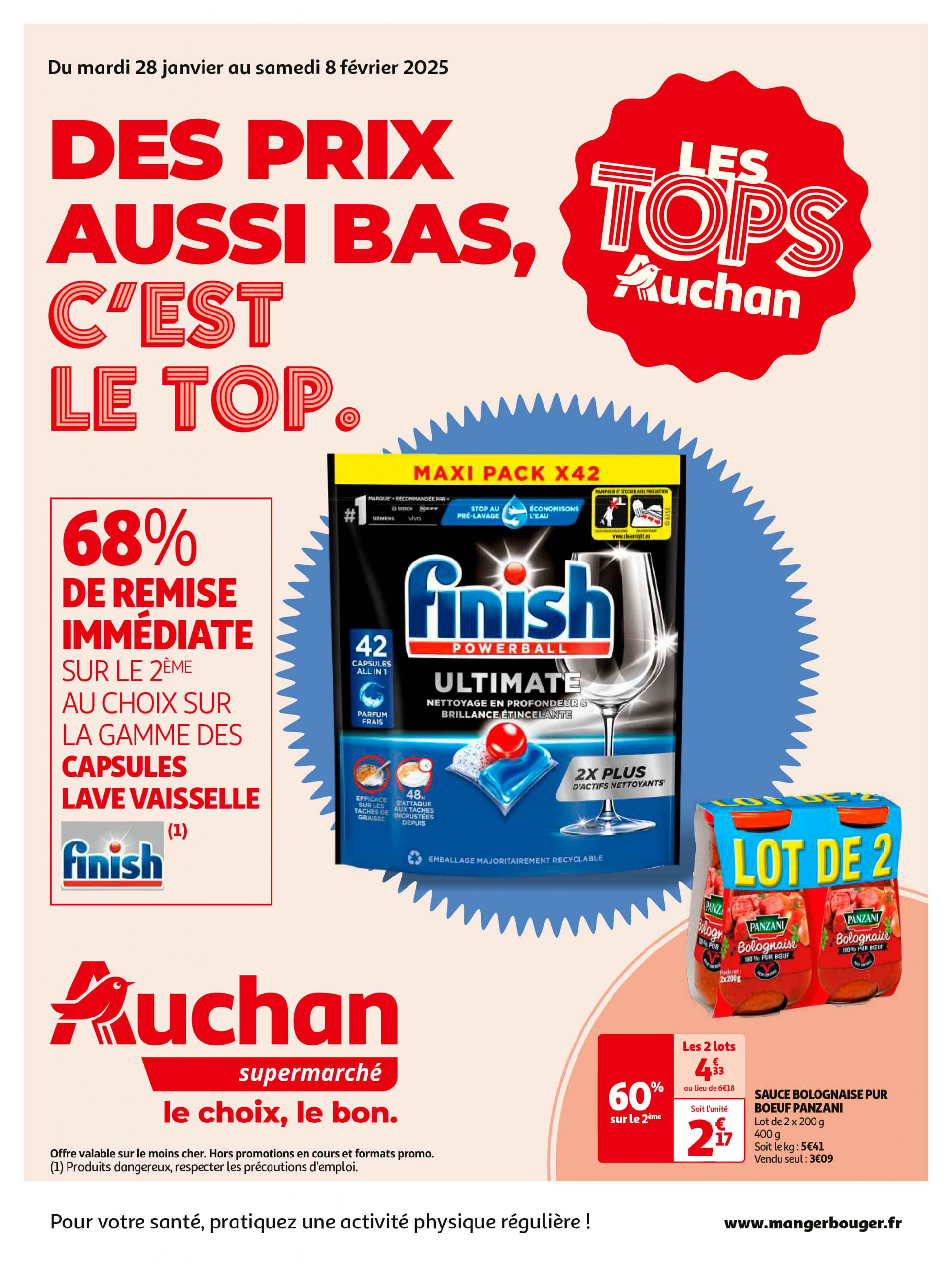 Du 28 janvier au 8 février 2025, des prix aussi bas, c’est le top ! jeudi 30 janvier 2025|Actualités, Auchan supermarché| Du 28 janvier au 8 février 2025, des prix aussi bas, c’est le top ! Catalogue Auchan du 28 janvier au 8 février 2025 1 fichier·s 4.96 MB Télécharger Partagez cette page sur les réseaux sociaux FacebookXRedditLinkedInWhatsAppTumblrPinterestEmail Articles similaires Du 7 au 11 octobre, le frais, le bon, moins cher ! Du 7 au 11 octobre, le frais, le bon, moins cher ! jeudi 09 octobre 2025 Du 30 septembre au 11 octobre, les Halles d’automne Du 30 septembre au 11 octobre, les Halles d’automne jeudi 09 octobre 2025 Du 16 au 27 septembre, c’est parti pour les petits prix ! Du 16 au 27 septembre, c’est parti pour les petits prix ! lundi 22 septembre 2025 Du 9 au 13 septembre, le frais le bon moins cher chez Auchan ! Du 9 au 13 septembre, le frais le bon moins cher chez Auchan ! mercredi 10 septembre 2025 Du 9 au 27 septembre, c’est la foire aux Vins chez Auchan ! Du 9 au 27 septembre, c’est la foire aux Vins chez Auchan ! mercredi 10 septembre 2025
